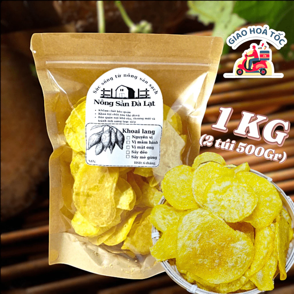 Sản phẩm (Hàng Loại A) 1KG Khoai lang vàng sấy mật ong giòn ngon NÔNG SẢN ĐÀ LẠT đặc sản Đà Lạt được sản xuất từ khoai lang vàng tươi, sấy khô và kết hợp với mật ong tự nhiên. Sản phẩm có giá 89,600 VND nhưng hiện đang được khuyến mãi chỉ 70,000 VND tại Marketplace Tripmap.