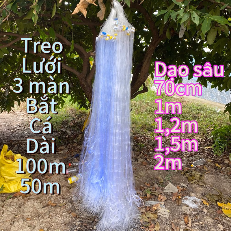 Treo lưới bắt cá 3 màn dài 100m Và 50m, cao từ 70cm đến 2m, mắt lưới 3p đến 10p Fishing Lưới Đánh Cá