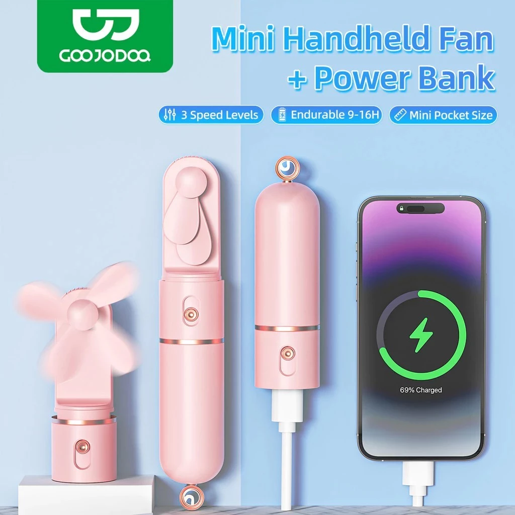 🔥 Quạt cầm tay GOOJODOQ + Pin dự phòng 3 tốc độ gió Tự động an toàn Lưỡi dao dừng Pin Type-C Sạc bền bỉ đang giảm giá!