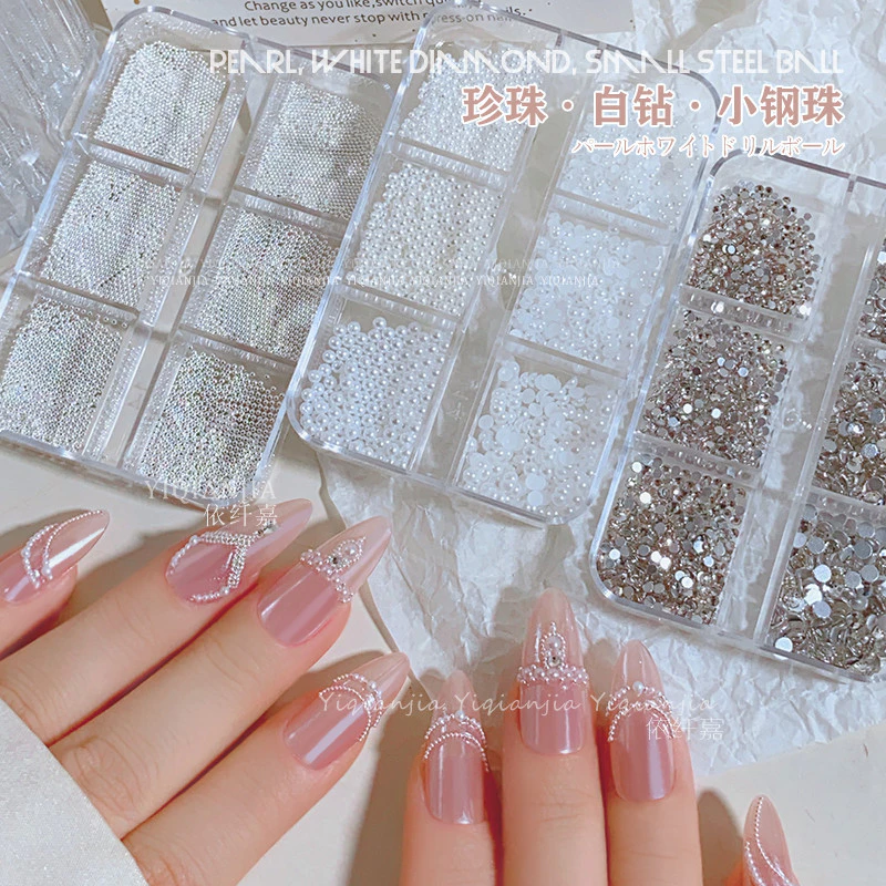 🔥 ✅ Kết Cấu Làm Móng Tay Mini Ngọc Trai Thép Bóng Trang Sức Chất Lượng Cao Độ Sáng Cao Hỗn Hợp Móng Tay Phẳng Nhỏ Tròn Kim Cương Không Phai Màu đang giảm giá!