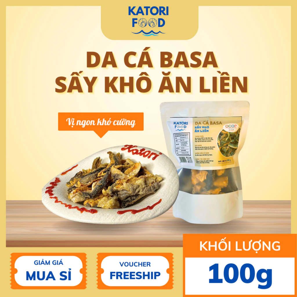 🔥 [TẶNG 1 TÚI] Combo 10 túi Da Cá Basa Sấy Khô Ăn Liền KATORI FOOD 100g/túi đang giảm giá!