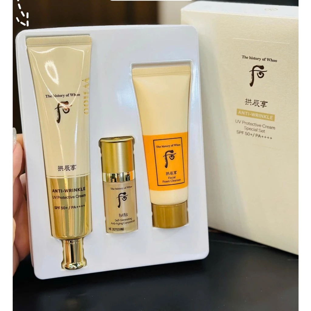 🔥 Set chống nắng, chông nhăn Whoo vàng 75ml Anti Wrinkle + tc bichup 8ml + srm 40ml đang giảm giá!