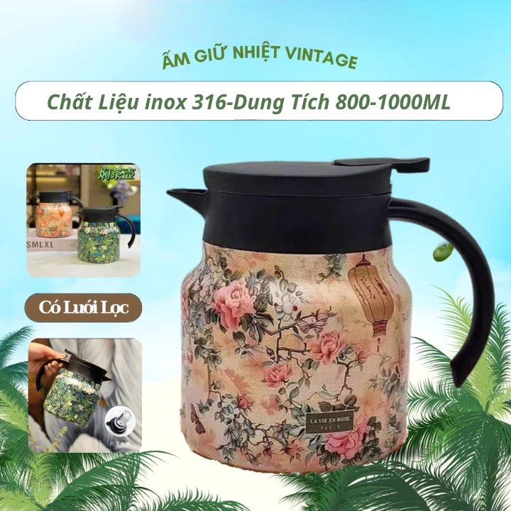 🔥 Bình Trà Giữ Nhiệt Inox 316 Dung Tích 800-1000ML Ấm Giữ Nhiệt Vân Hoa Nghệ Thuật Pha Trà, Cà Phê đang giảm giá!