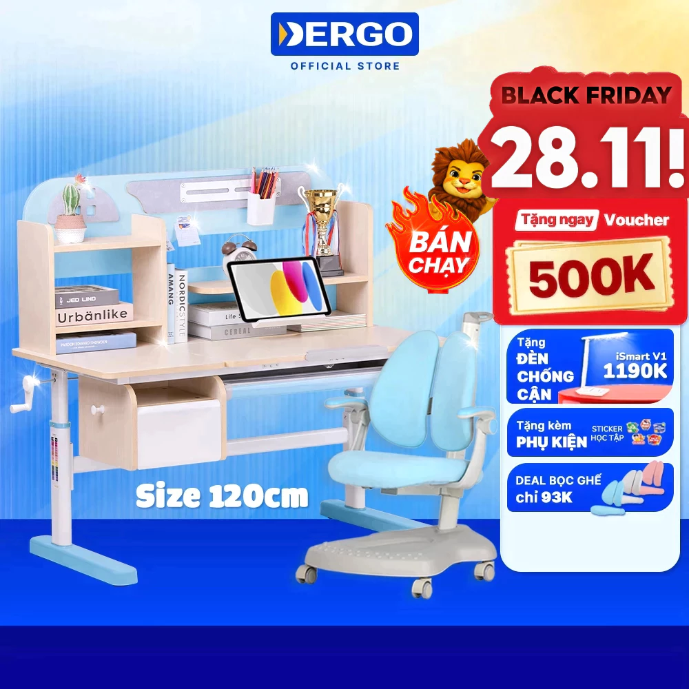 🔥 [Mới – Voucher 500K] Bộ Bàn Học Thông Minh Chống Gù Chống Cận DERGO LEO E120 Bộ Bàn Học Cao Cấp Cho Bé Nâng Hạ Độ Cao đang giảm giá!