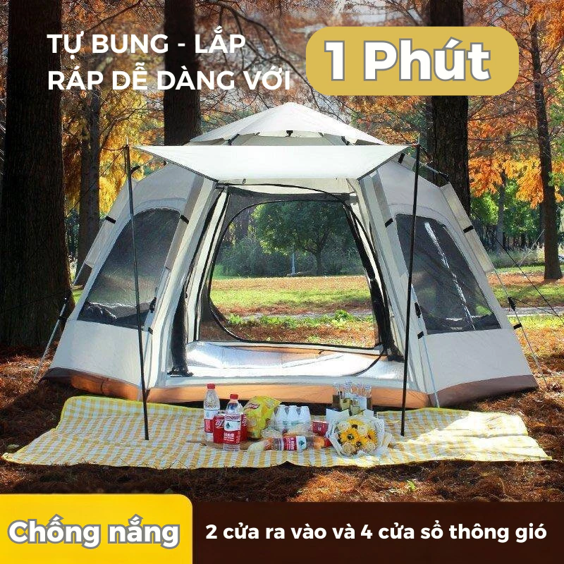 Lều Cắm Trại Nhóm – Lều Tự Bung Lục Giác 6 Cửa