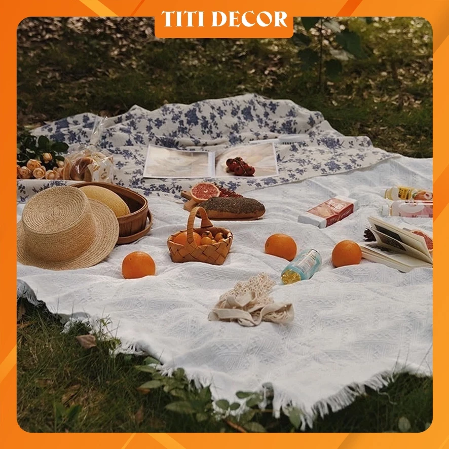 🔥 Thảm picnic, thảm dã ngoại, thảm đi biển vải cotton polyester, khăn ren trắng phong cách vintage đang giảm giá!