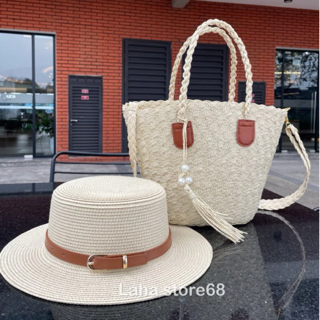 🔥 Sét mũ vành ngang và túi cói size vừa xinh xắn (ST11) đang giảm giá!
