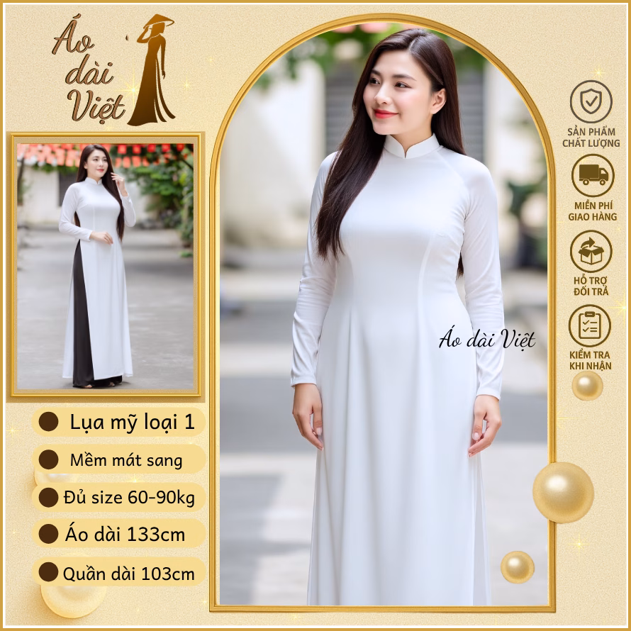 Một trong những sản phẩm áo dài BIG SIZE được ưa chuộng nhất hiện nay là Áo dài dáng xưa vải lụa đính nơ kèm quần có cả BIG SIZE. Sản phẩm này được thiết kế với chất liệu lụa cao cấp, mềm mại và thoáng mát, mang lại sự thoải mái cho người mặc. Với thiết kế cổ điển và tinh tế, áo dài này giúp người mặc cảm thấy tự tin và sang trọng.