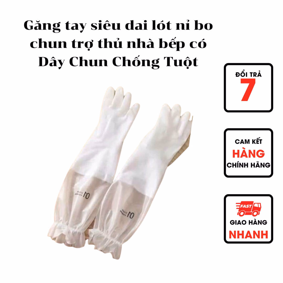 Găng tay siêu dai dài bo chun lót nỉ là một loại găng tay được thiết kế để mang lại sự ấm áp và bảo vệ cho đôi tay trong những ngày lạnh giá. Chúng thường được làm từ chất liệu nỉ mềm mại, bên trong có lớp lót giúp giữ ấm và thoải mái cho da tay. Thiết kế dài và bo chun giúp găng tay ôm sát tay, không gây vướng víu khi di chuyển.