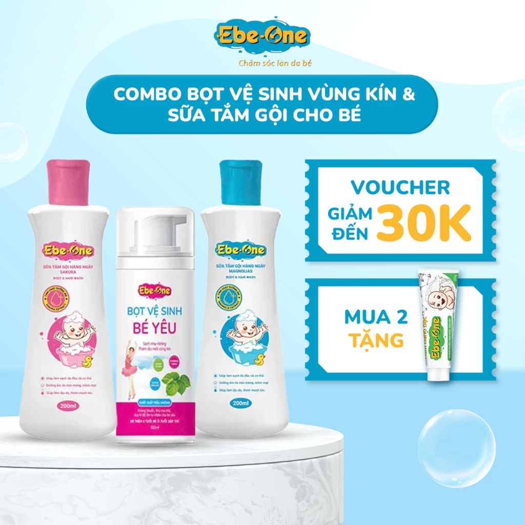 🔥 Combo Bọt Vệ Sinh Vùng Kín & Sữa Tắm Gội Cho Bé EbeOne 200ml – Dịu Nhẹ, Thơm Mượt Tóc đang giảm giá!